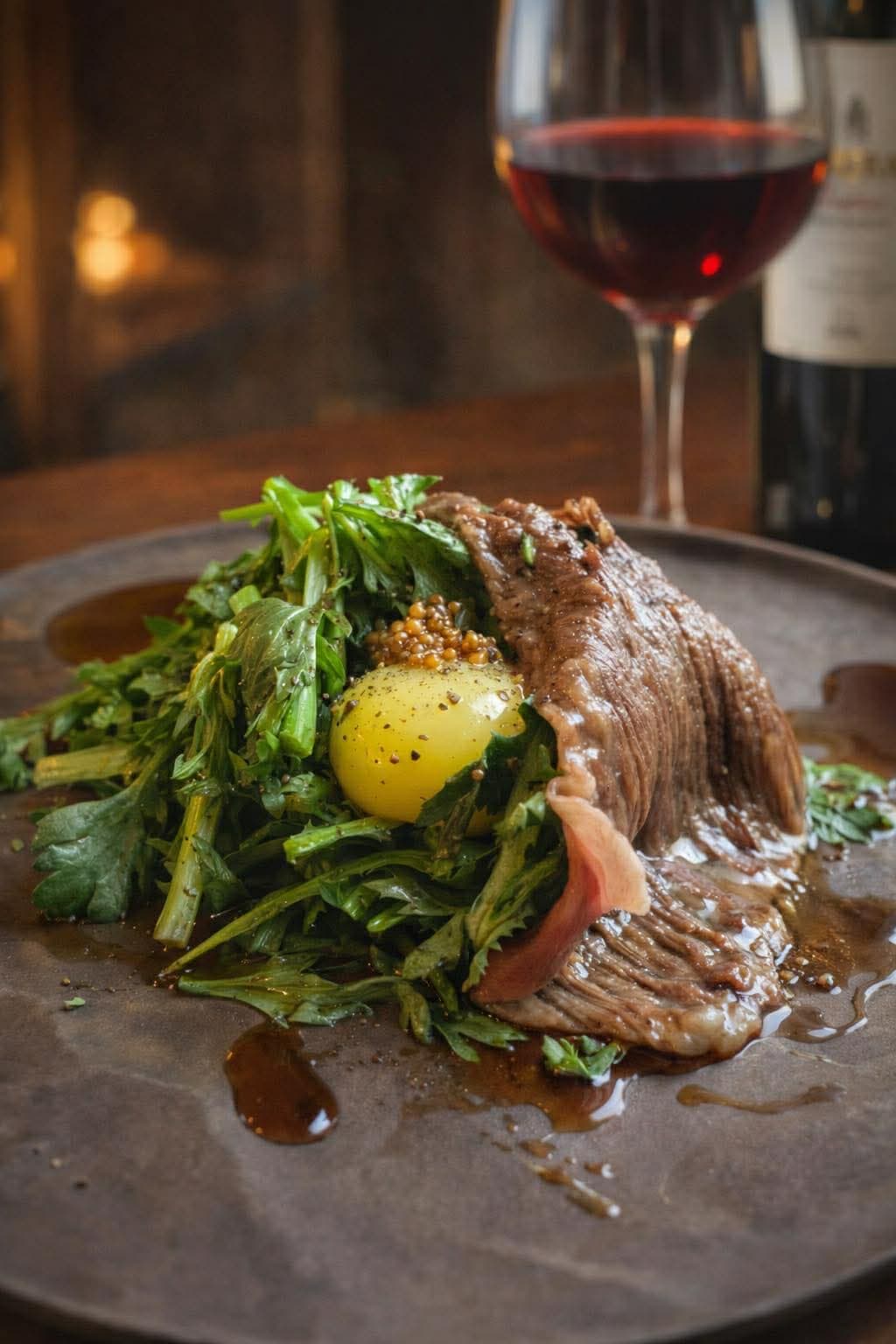 サシのしっかり入った黒毛和牛ザブトンの薄切りに、